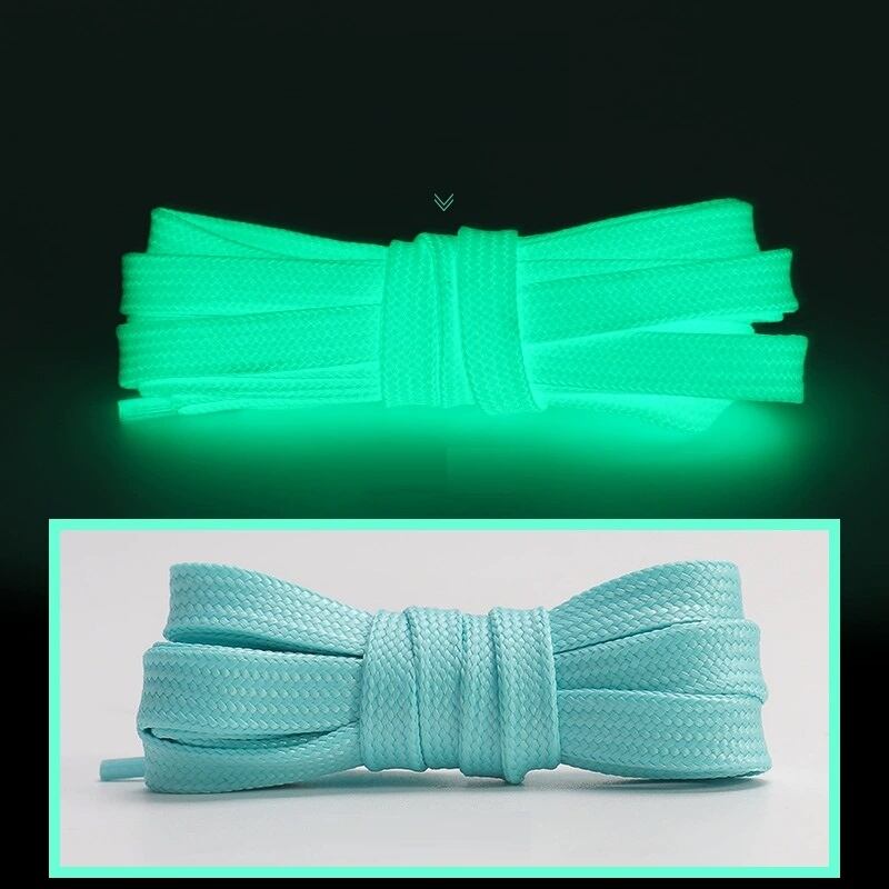 【安全性を高める!夜光反射靴ひものご提案!】この夜光反射靴ひもは、8mm幅×1mの長さで、アクアブルーの美しいデザインが特徴です。夜間ランニングやアウトドア活動での安全性を向上させるアイテムです!反射素材を使用しているため、暗い場所でも目立ち、安心して走ることができます。
