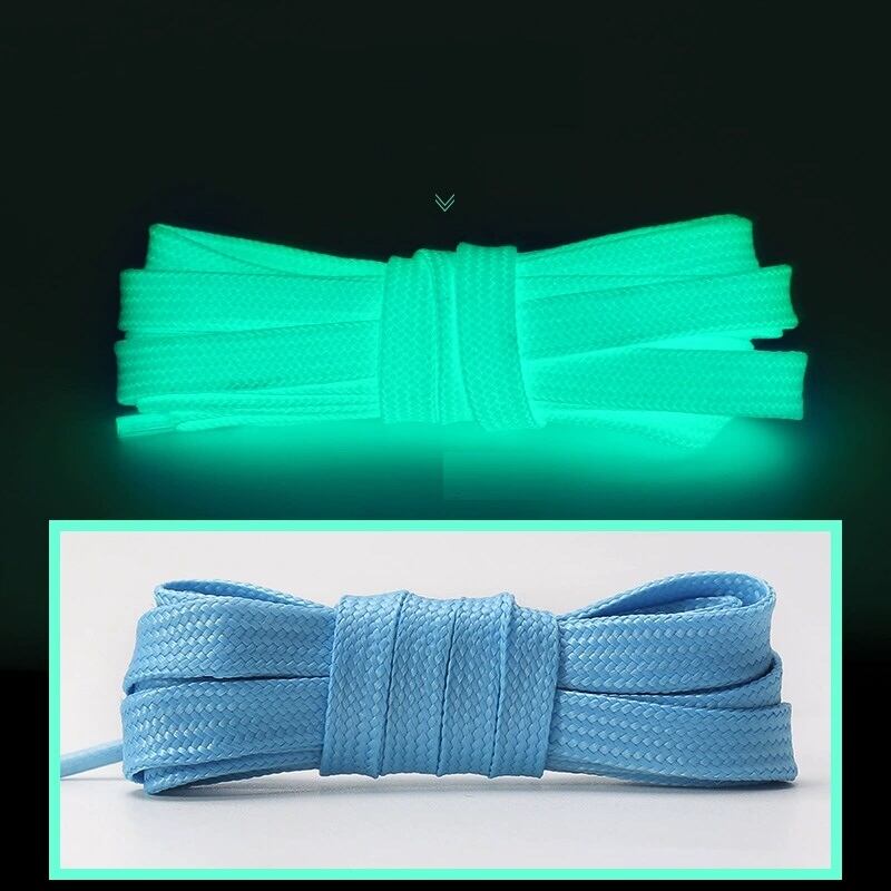 【安全性を高める!夜光反射靴ひものご提案!】この夜光反射靴ひもは、8mm幅×1mの長さで、ブルーの美しいデザインが特徴です。夜間ランニングやアウトドア活動での安全性を向上させるアイテムです!反射素材を使用しているため、暗い場所でも目立ち、安心して走ることができます。