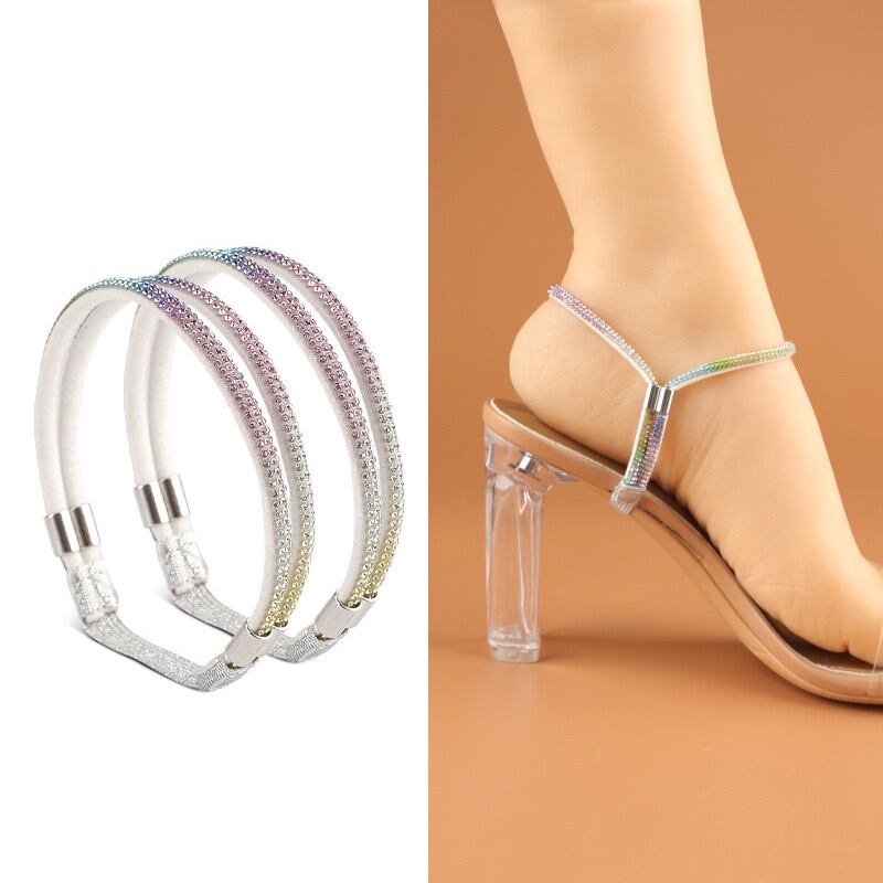 【美しさと快適さを両立!かかと脱げ防止ストラップのご提案!】このかかと脱げ防止ストラップは、レインボー色のカラフルで楽しいデザインが特徴です。高級ラインストーンの輝きが加わり、パンプスやハイヒールに装着することで、足元を一層華やかに演出します!これで自信を持って歩くことができるアイテムです。