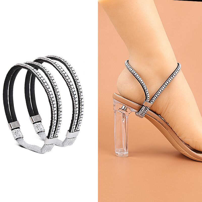かかと脱げ防止ストラップ 調整可能 取付簡単 黒色真珠付 靴ずれ防止 高級ラインストーン付き パンプス ハイヒール対応ni10000a314