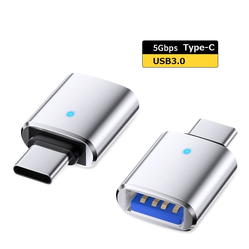 OTGアダプター Type-C to USB3.1 高速データ転送 シルバー色 スマホ・USBメモリ対応 LEDライト・車載機器用ka10000a231