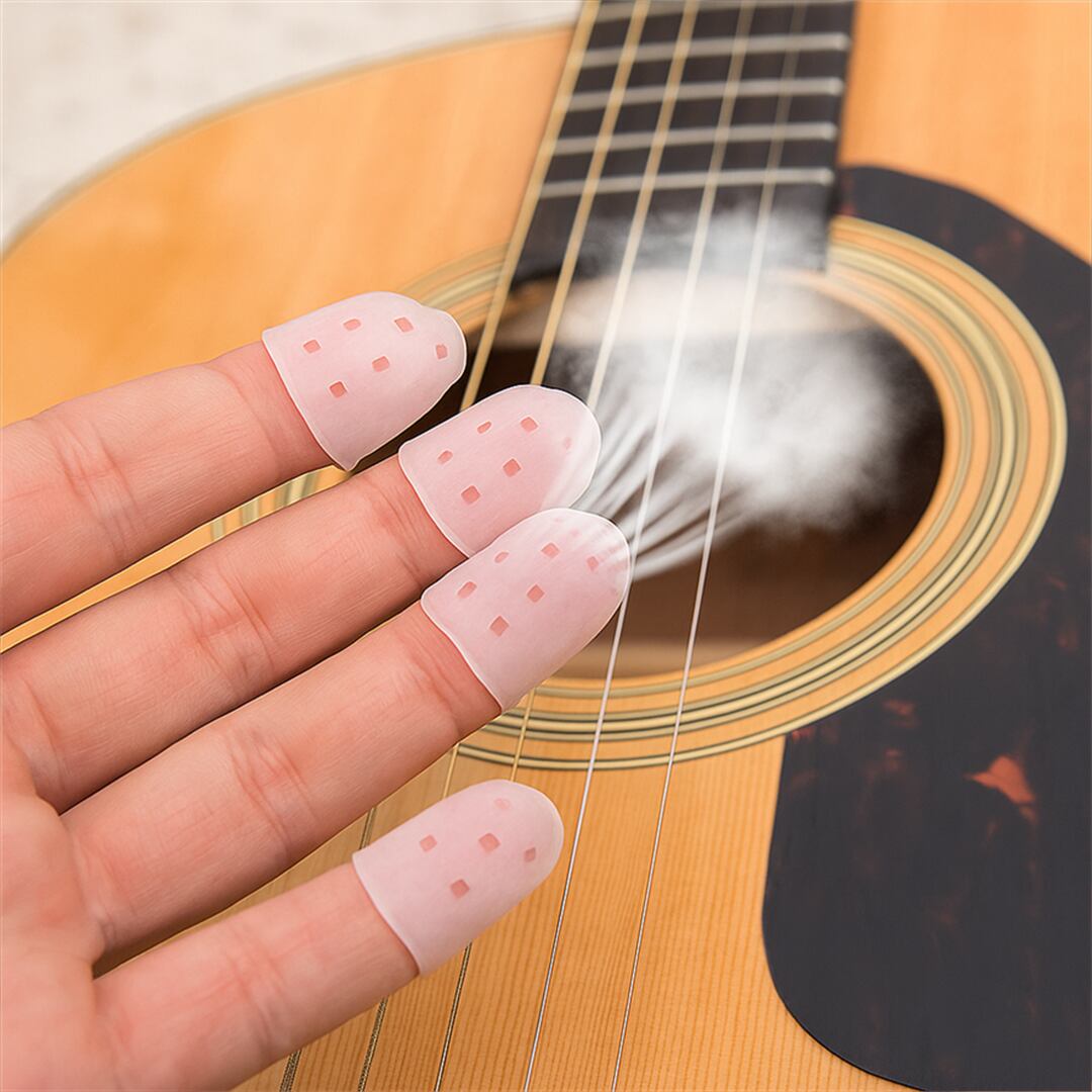 【快適な演奏体験を提供する、ギター用左手指シリコンカバーが新登場です!】この透明タイプのシリコンカバーは、弦を押さえる際のサポートをしっかりと行い、指先を保護します。小サイズの設計で、手にぴったりフィットし、演奏時の動きを妨げることがありません。