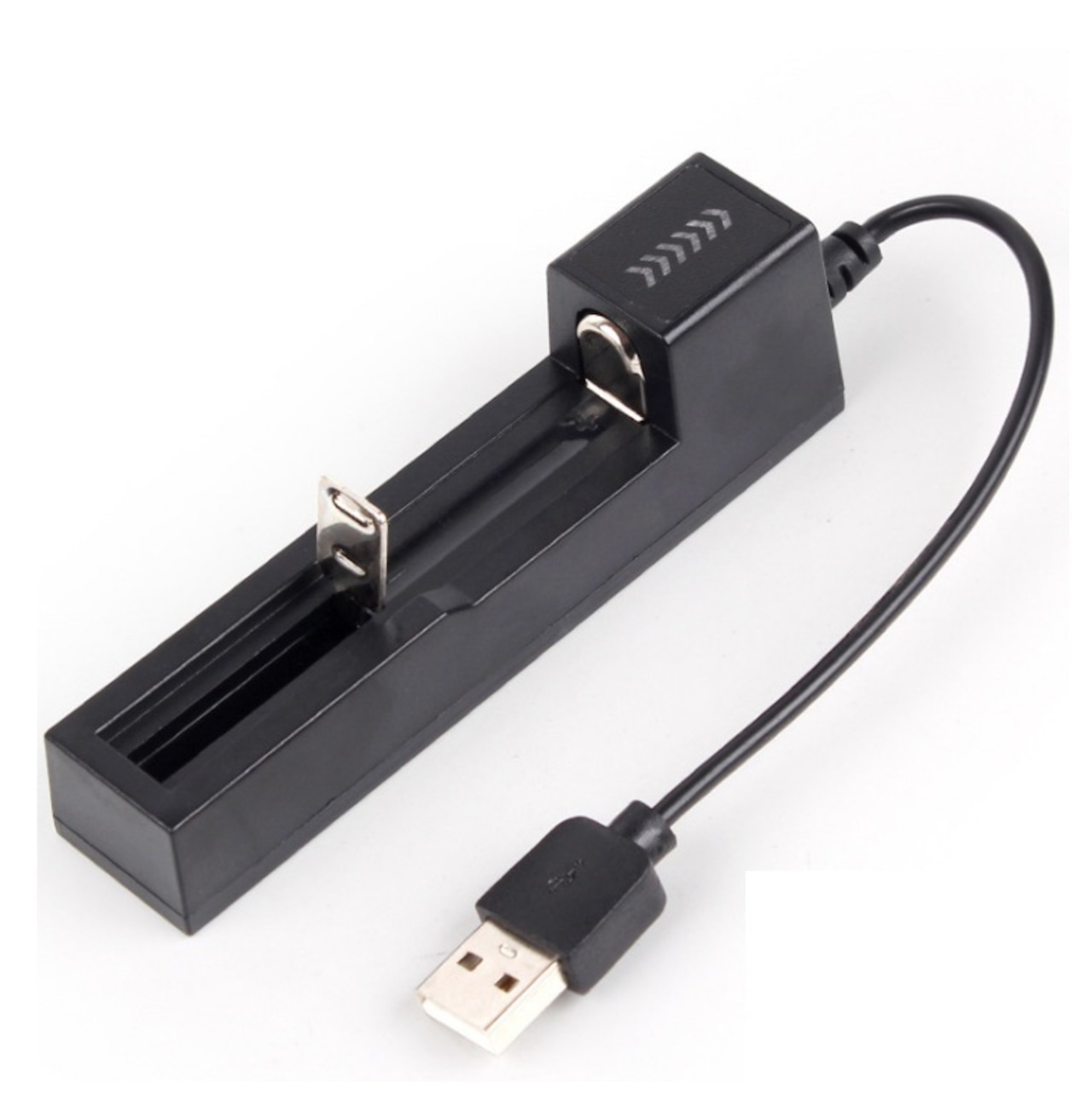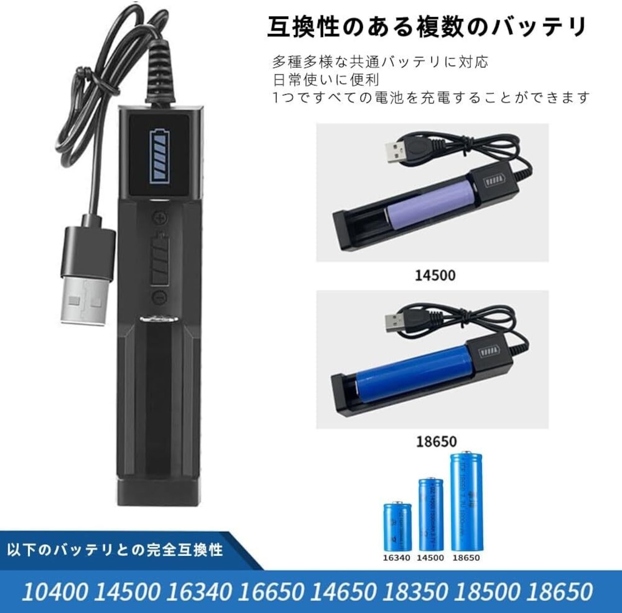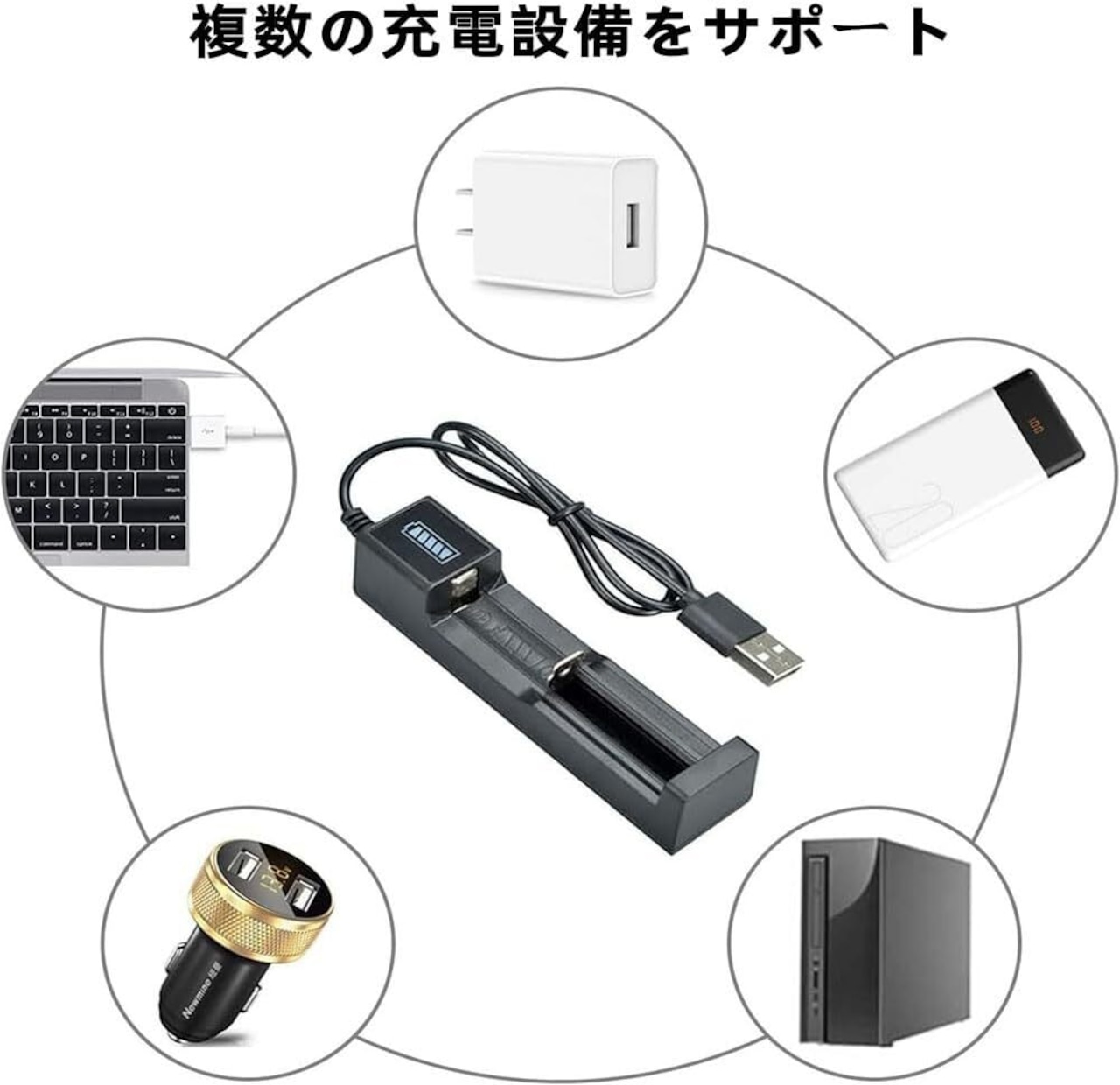 USB急速充電器 バッテリー充電器 シングルスロット 3.7Vリチウムイオン電池対応 18650/14500/16340/26650 USBケーブル付ka10000a605
