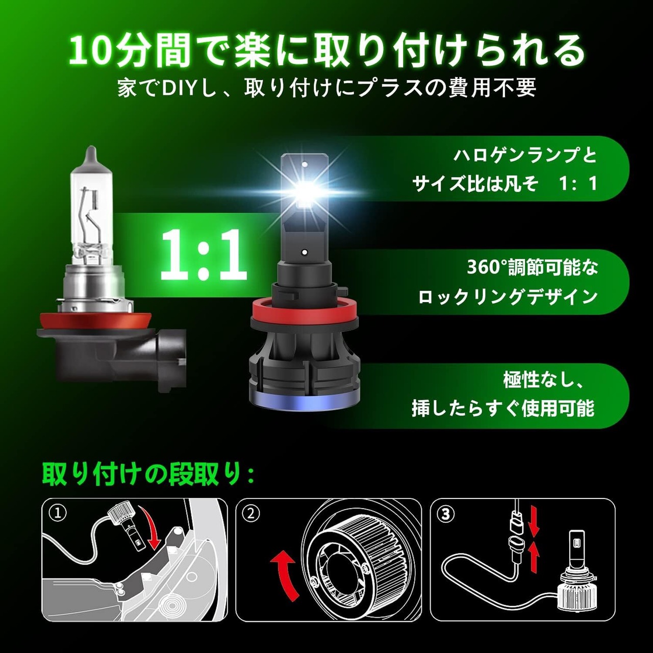 H11/H9/H8 LEDヘッドライト 車用 新車検対応 6000K ホワイトライト 3000K イエローライト 二色の光 16000LM 50W/セット出力 明るさ4倍ハロゲン比 純正ハロゲンと発光点一致 長寿命 高速回転冷却ファン付け 放熱性静音 瞬間起動 (2個入)ka10000a635