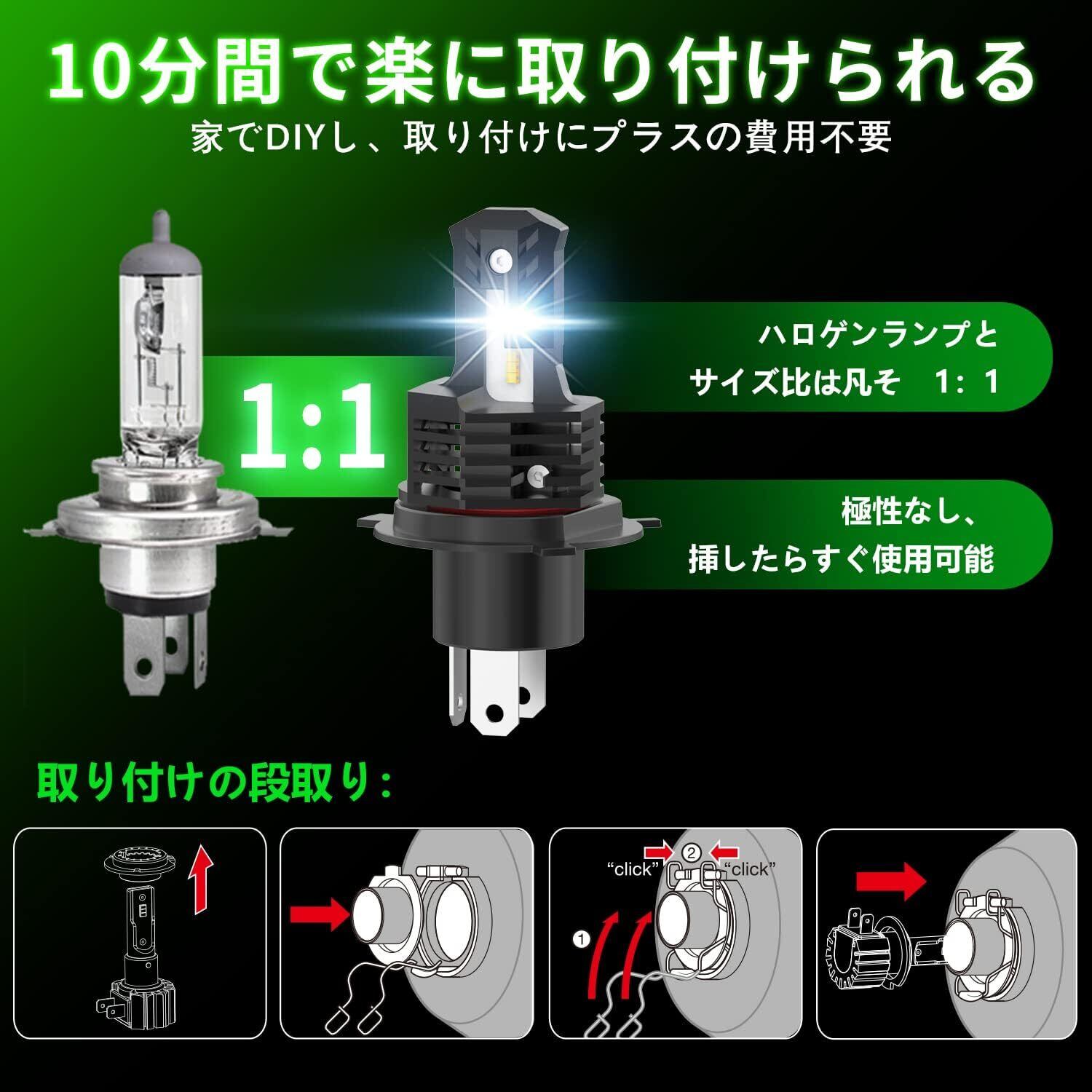 H4 Hi/Lo LEDヘッドライト 車用 新車検対応 6000Kホワイトライト 15000LM 40W/セット出力 明るさ4倍ハロゲン比 純正ハロゲンと発光点一致 長寿命 高速回転冷却ファン付け 放熱性静音 瞬間起動 (2個入)管H4/QZE3