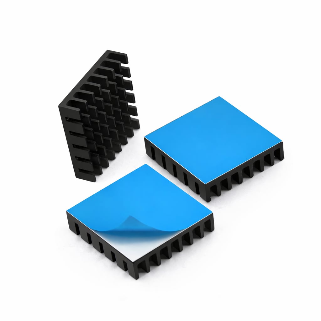 ヒートシンク 22×22×6mm アルミ製 放熱板 黒色 高熱伝導性両面粘着シート. 冷却用 3個セットka10000a759