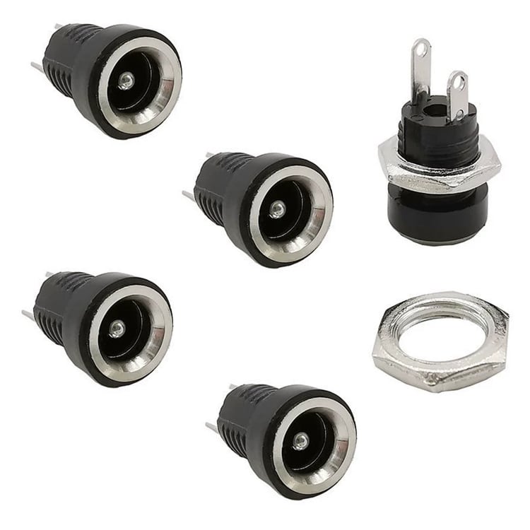 DC電源ジャック 5.5×2.1mm メス 丸穴パネル用 ナット固定 2ピン ソケット 5個入り ka10000a779