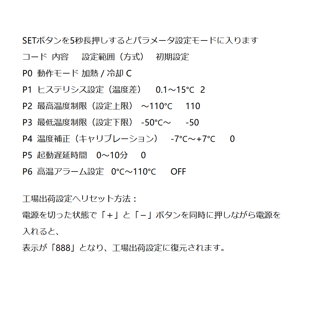 高温アラーム範囲:0~110℃