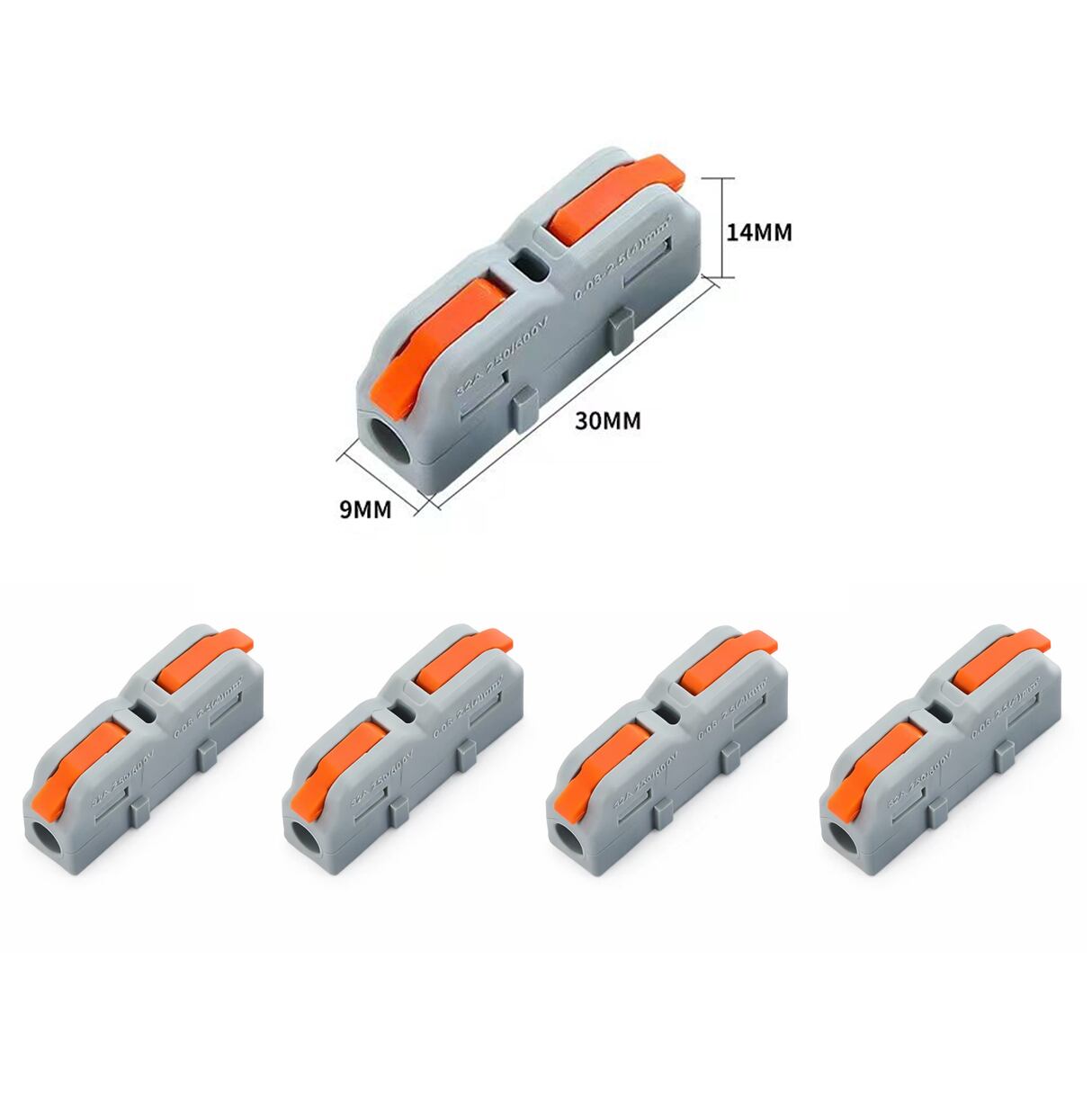 商品名: 5個セット レバー式ワンタッチ配線コネクタ SPL-1M 電線接続端子 0.08-4.0mm²対応 32A ケーブルコネクタ