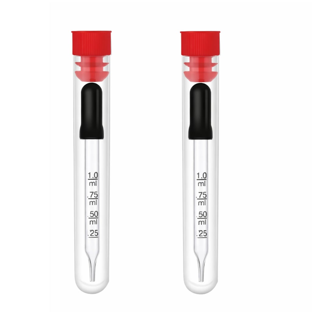 本製品は、1mlの目盛り付きガラス製スポイトの2本セットです。精油や化粧品、香水などの液体を小分けする際に非常に便利で、正確な量の移送が可能です。ガラス製のため、化学薬品にも強く、安心してご使用いただけます。