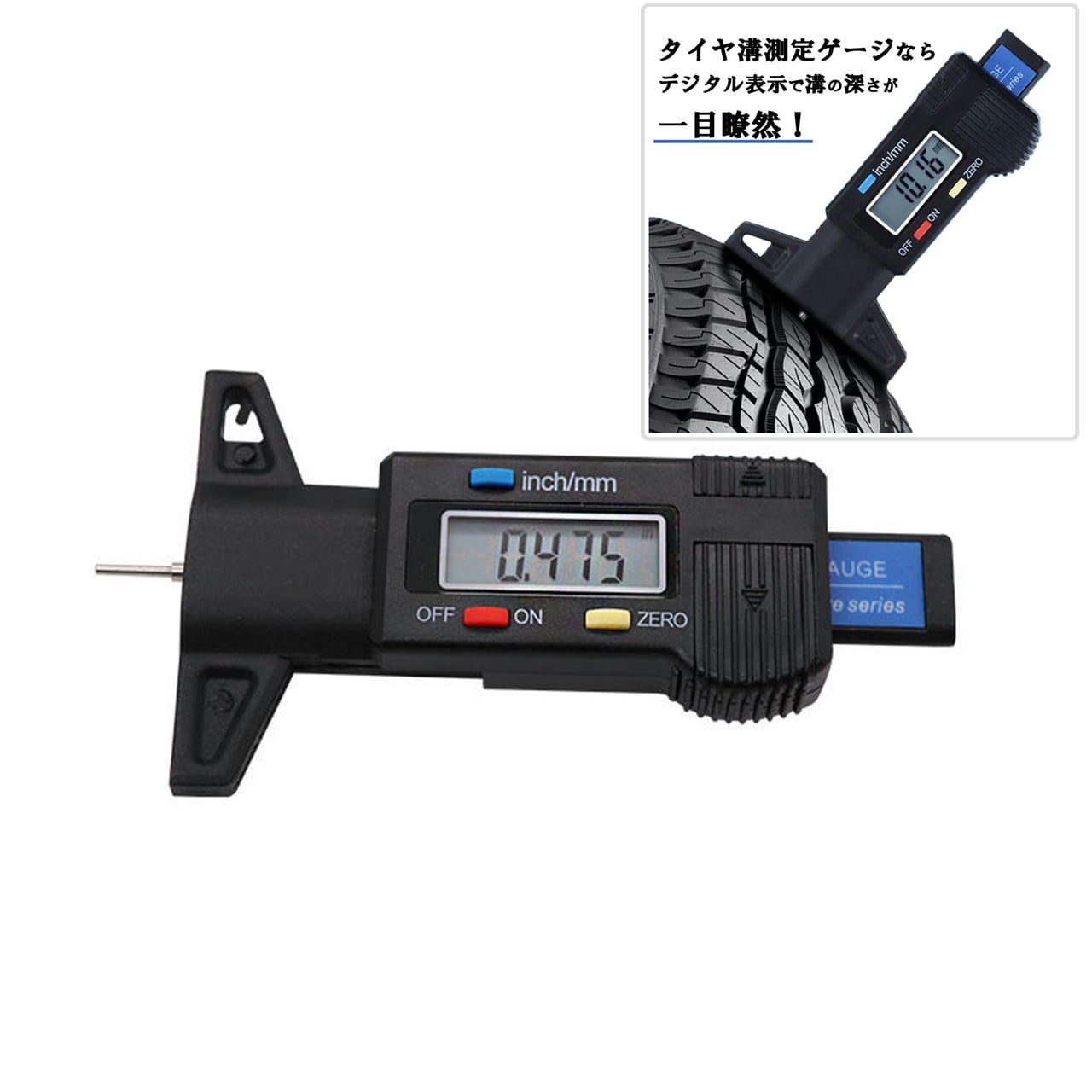 タイヤ溝測定ゲージ デジタル デプスゲージ タイヤ溝測定器 タイヤ溝ゲージ タイヤ ひび割れ 交換時期 測り方