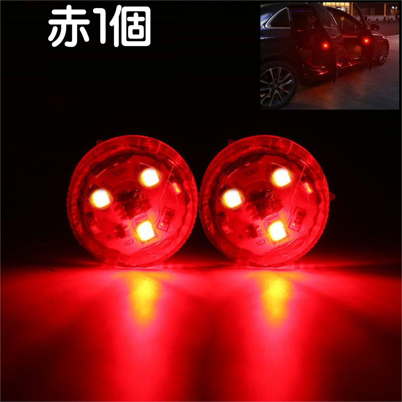 LEDドアライト 赤1個 単品 カー用品 ライト ドア開閉ライト 警告灯 粘着テープ式 夜間 歩行者 自転車 衝突防止 追突防止 電池式 配線不要