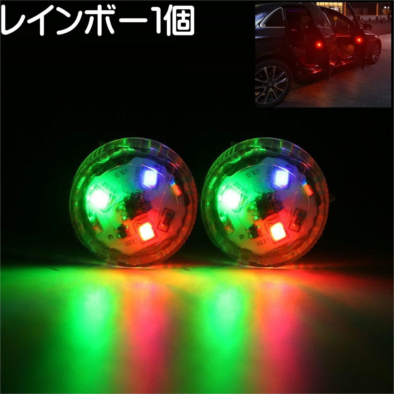 LEDドアライト レインボー1個 単品 カー用品 ライト ドア開閉ライト 警告灯 粘着テープ式 夜間 歩行者 自転車 衝突防止 追突防止 電池式 配線不要