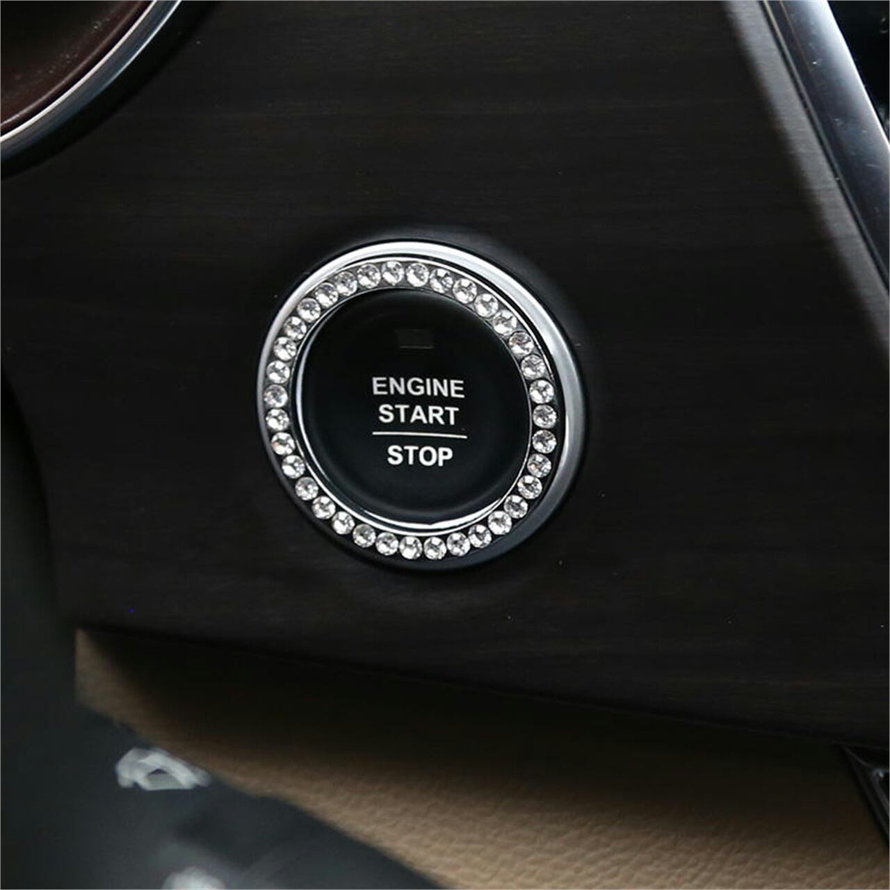 エンジンスタートボタンリング 車用 白色1個 スタートボタンカバー プッシュスターター カーアクセサリー 内装 車内装飾 ラインストーン サークル キラキラ